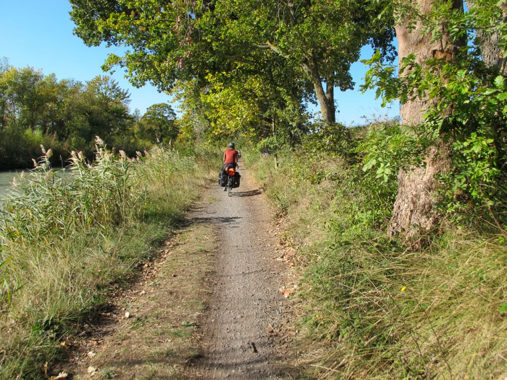 A titre professionnel, c’était pour moi l’occasion de tester le Charmant Som dans des conditions de voyage chargé (avec 5 sacoches + la tente). Alexia, ma compagne, et moi en étions équipés, tous les deux avec des pneus de 30 mm plutôt lisses. Nous avons fait beaucoup de pistes et de chemins, surtout le long des canaux et tout s’est très bien passé (sauf les 3 crevaisons d’Alexia, merci les Schwalbe G-One Speed !) et j’avoue avoir pris énormément de plaisir à rouler avec un Charmant Som sur ce voyage (il est d’ailleurs en vente sur la page des bonnes affaires 😉 )