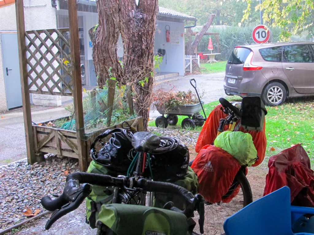 Puis nous avons bifurqué en direction de Castres, à moitié sur les petites routes et à moitiés sur le tracé provisoire de la V84 qui comprend la PassaPaïs. Nous garderons un très bon souvenir des bords de la Rigole de la Plaine qui nous a amené jusqu’à Revel ou nous avons fait halte pour la nuit. Et c’est là que la météo a commencé à sérieusement compliquer nos vacances…