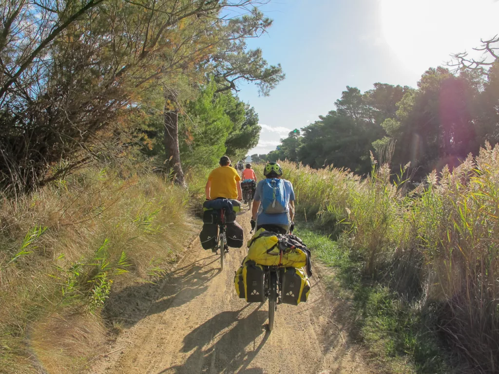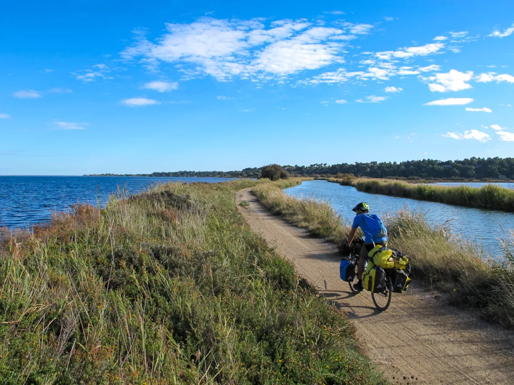Cette partie sauvage de l’EV8 dure jusqu’à Leucate. Essentiellement sur chemins, elle nous a fourni aussi tout le sel d’un voyage à vélo : les crevaisons, la chute d’un participant dans le canal et les meilleurs spots photos des vacances ! 24 h auront suffit à nous faire oublié les difficultés rencontrées et le voyage reprend comme s’il n’y avait jamais eu de problème.