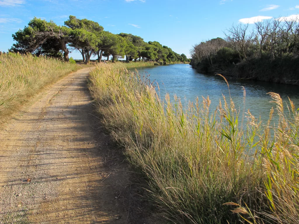 Nous sommes de retour sur les bords d’un canal, celui de la Robine entre Narbonne et Port la Nouvelle. Le temps splendide et le cadre magique nous fait vite oublier la pluie et le regret de ne pas avoir vue la PassaPaïs. La météo est redevenue radieuse et le chemin coincé entre le canal et les étangs est un bijou des itinéraires vélos français ! Un moment magique.