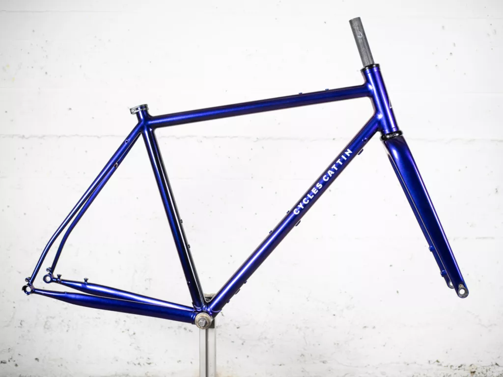 Le cadre est en acier léger (tubes Dedacciai Zero et Columbus Life), soudobrasé au laiton. La géométrie est le fruit de 40 ans d’expérimentation par 2 génération de cadreur, Daniel Cattin puis Fabien Bonnet et sera adaptée à votre morphologie et votre besoins spécifique, du vrai sur mesure.