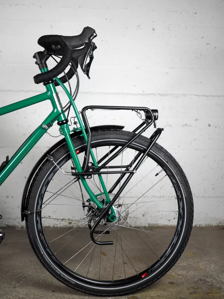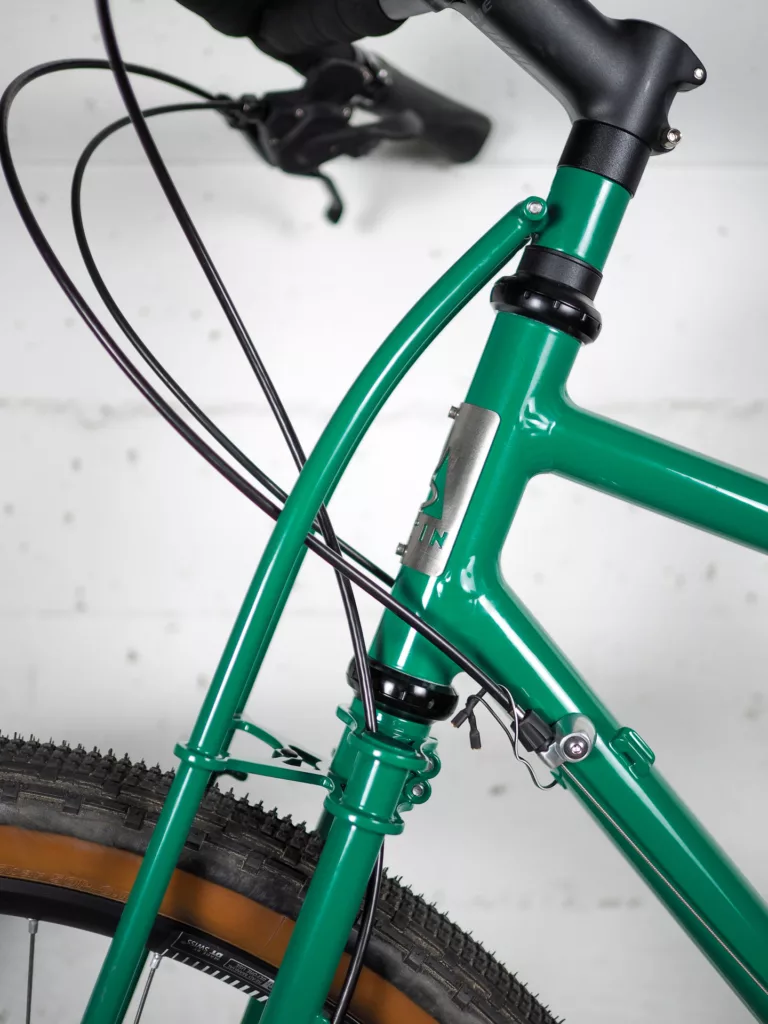 Les standards utilisés sont les plus communs du marché (pivot 1″1/8, boîtier de pédalier BSA, serrage rapide…) pour offrir une réparabilité facile lors de vos voyages.