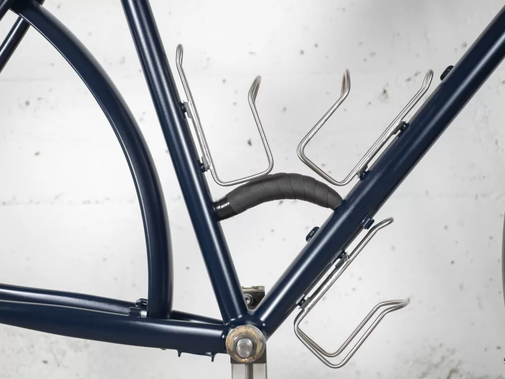 - 3 porte bidon dont 2 avec un triple inserts (dessus et dessous le tube diagonal)