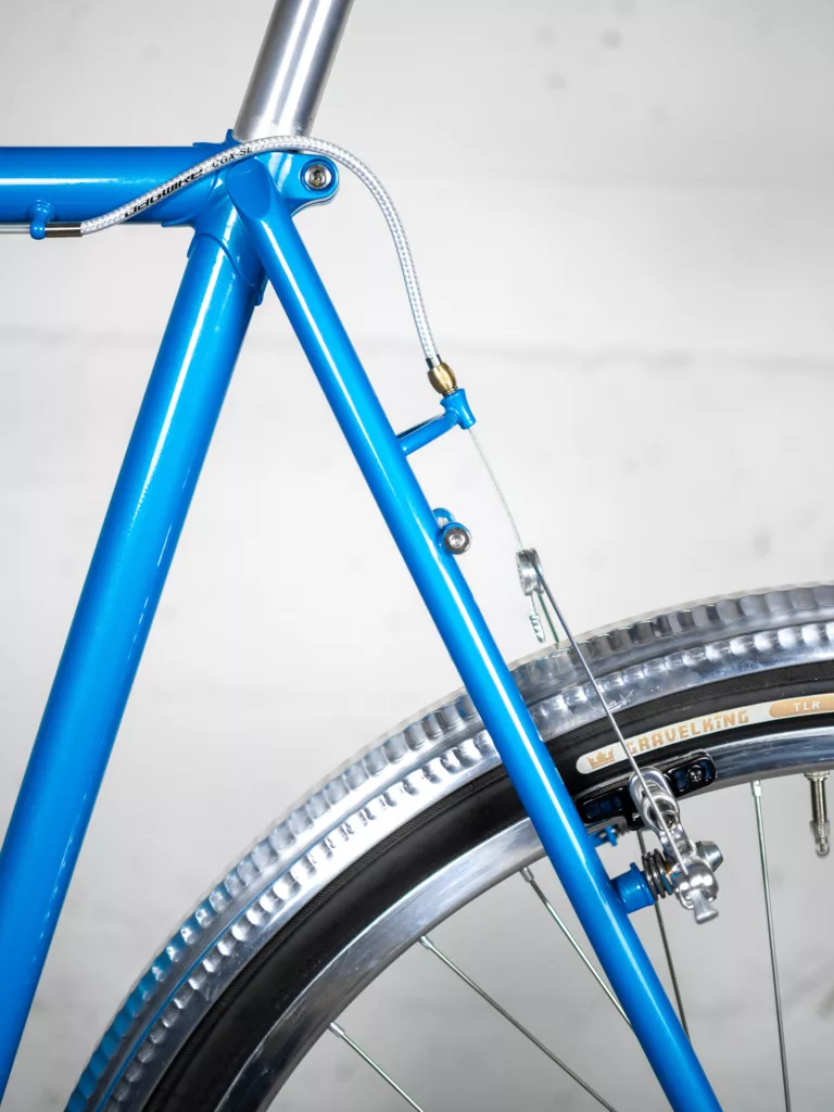 Nous vous avons concocté une paire de roues faites des meilleurs composants actuels en finition argent, dans une esprit de randonnée et bien sûr compatible avec un freinage sur jante ! Car pour rester dans l’esprit de ses glorieuses ancêtres, la Belle Époque se doit d’utiliser des freins de type cantilevers.